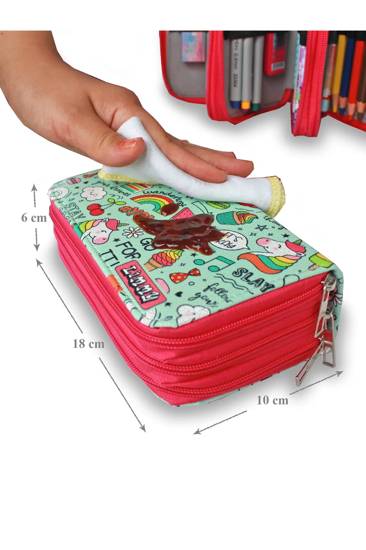 | Etiketler | Kalem Kutusu Gökkuşağı Unicorn Kawai Organizer Kalemkutu Vegan Deri Üç Bölmeli Kalemlik -Pembe |
