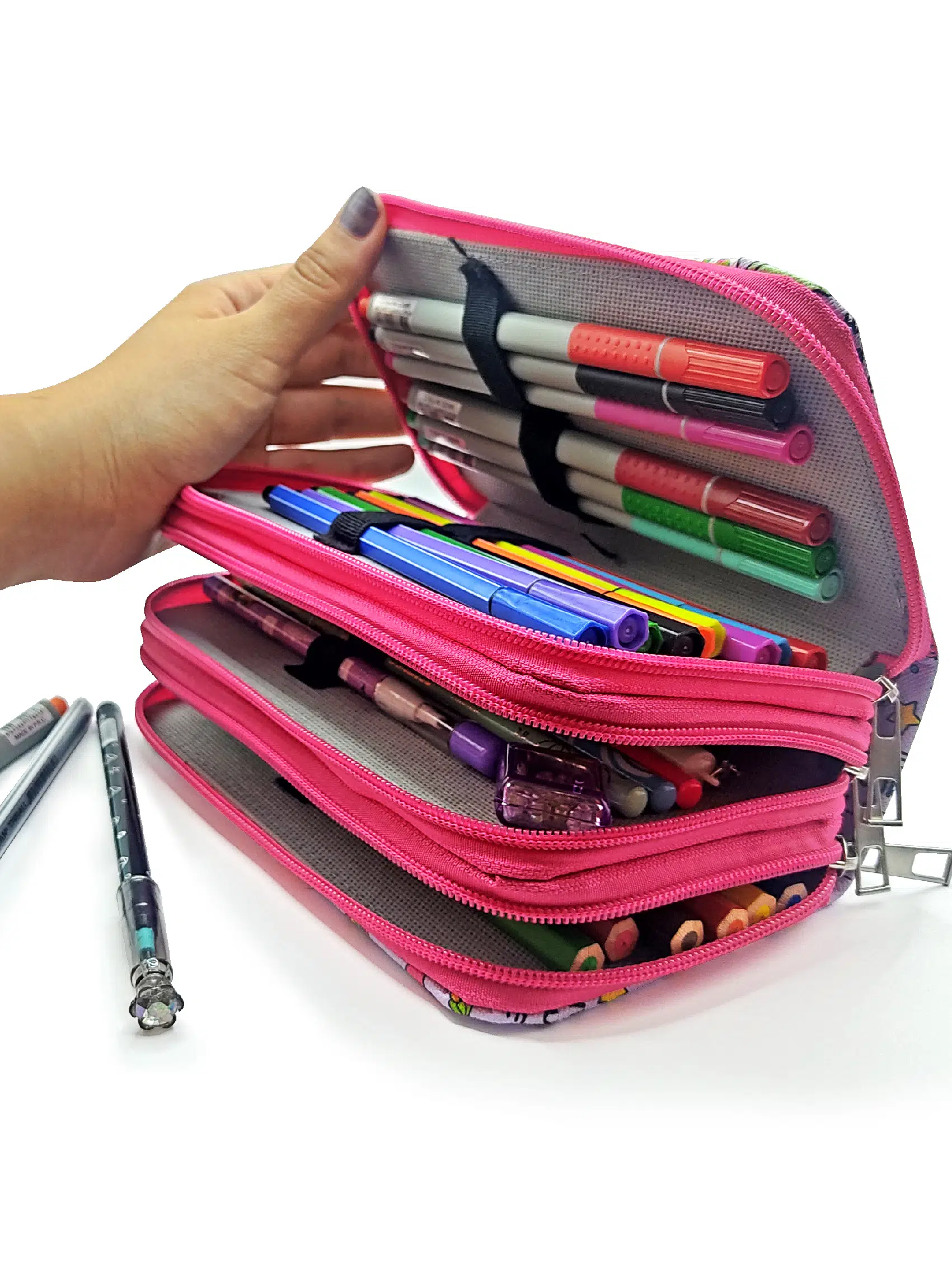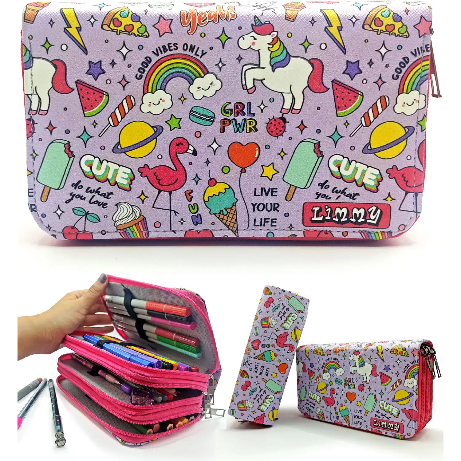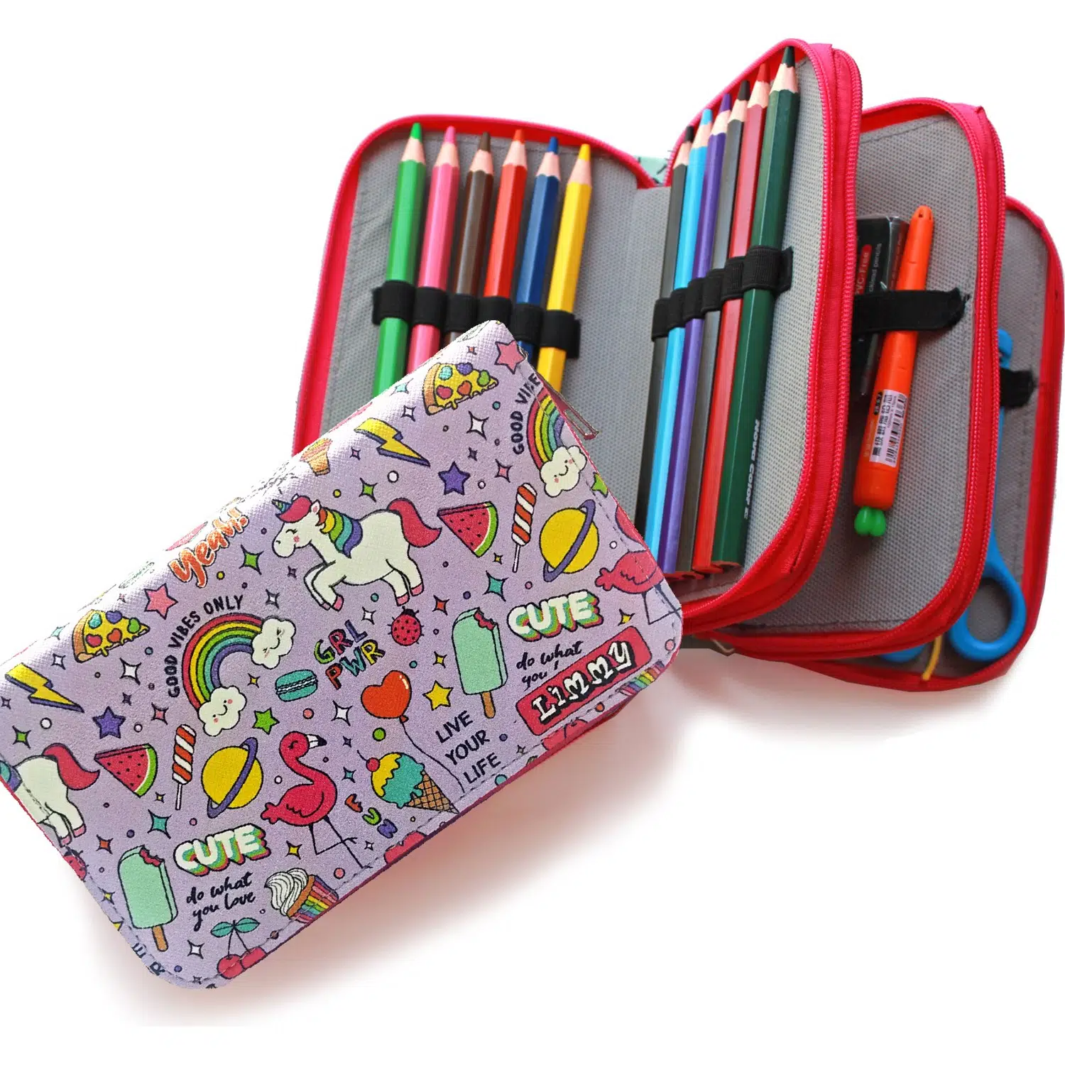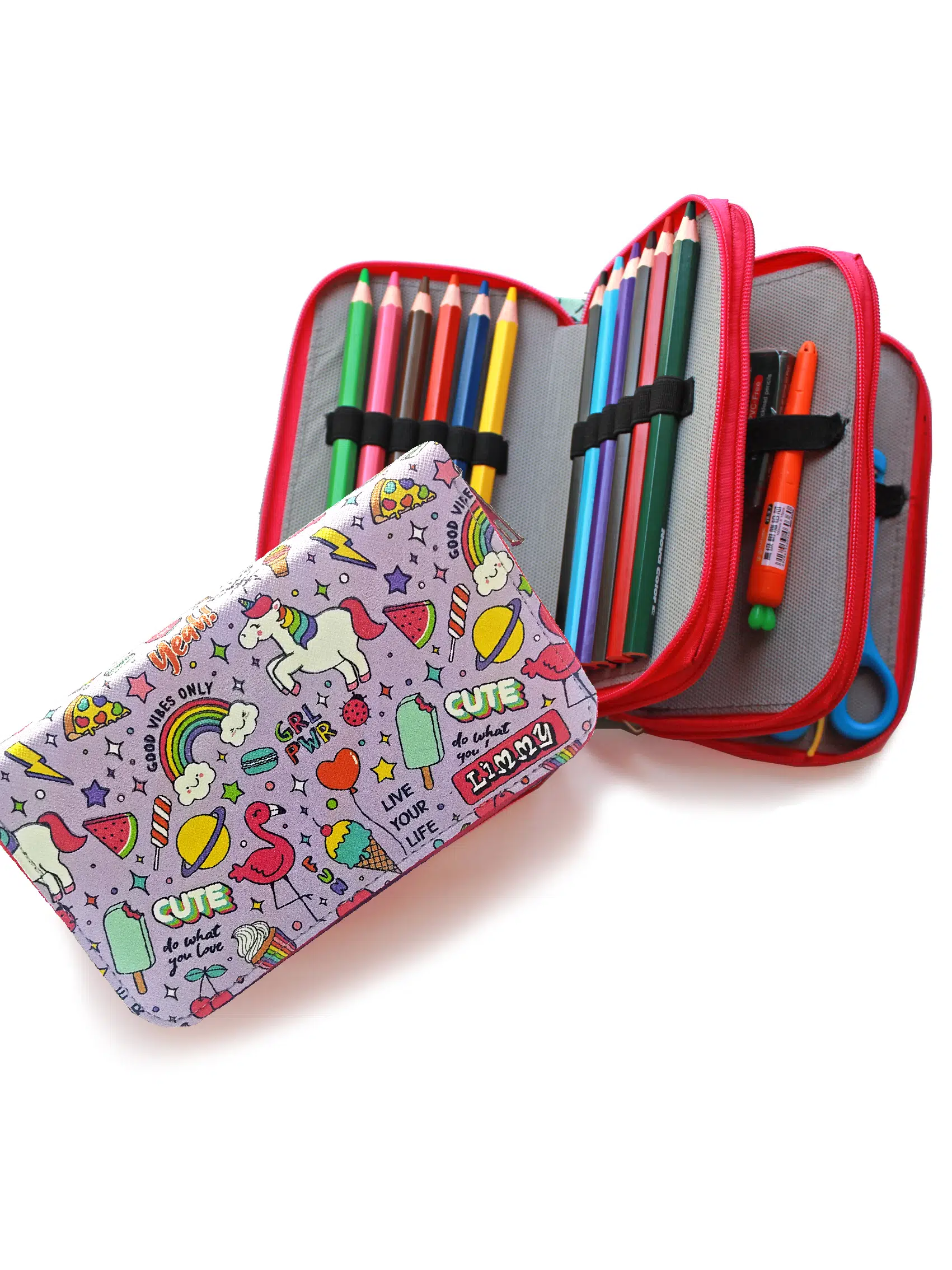 Limmy kalem çantaları kalem bölmelerine 24 adet kalem ve silgi kalem traş vb eşyaları koyabilirsiniz.