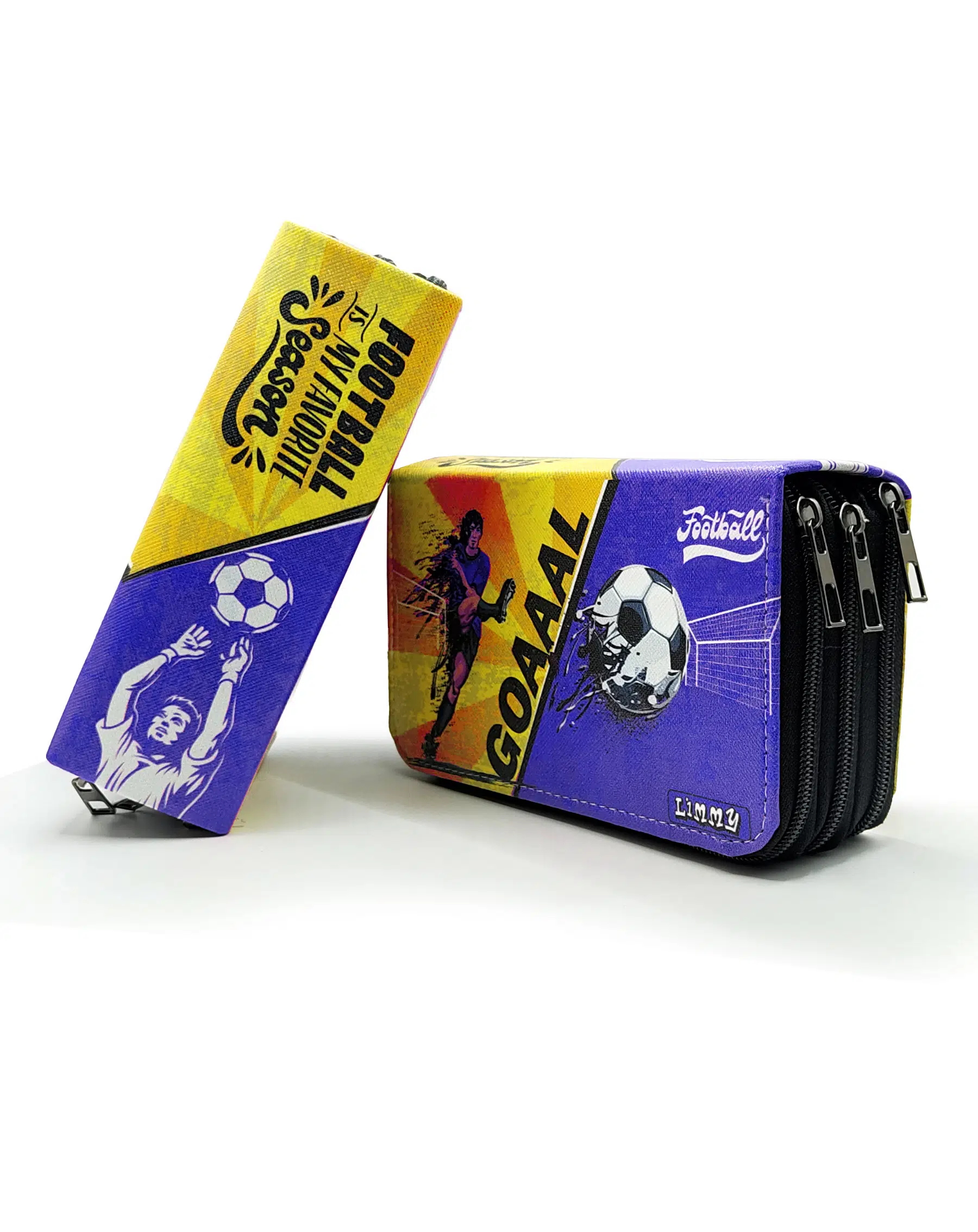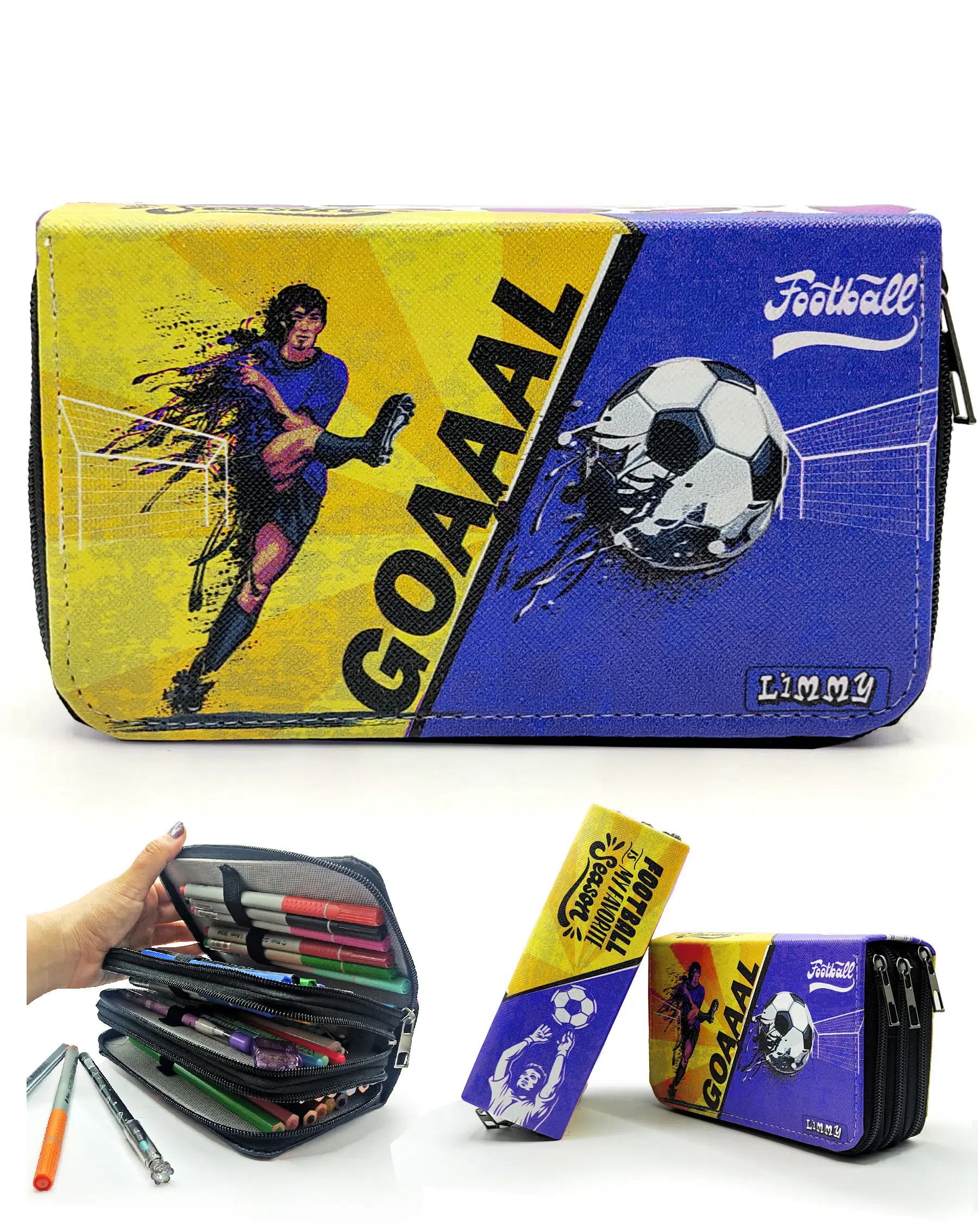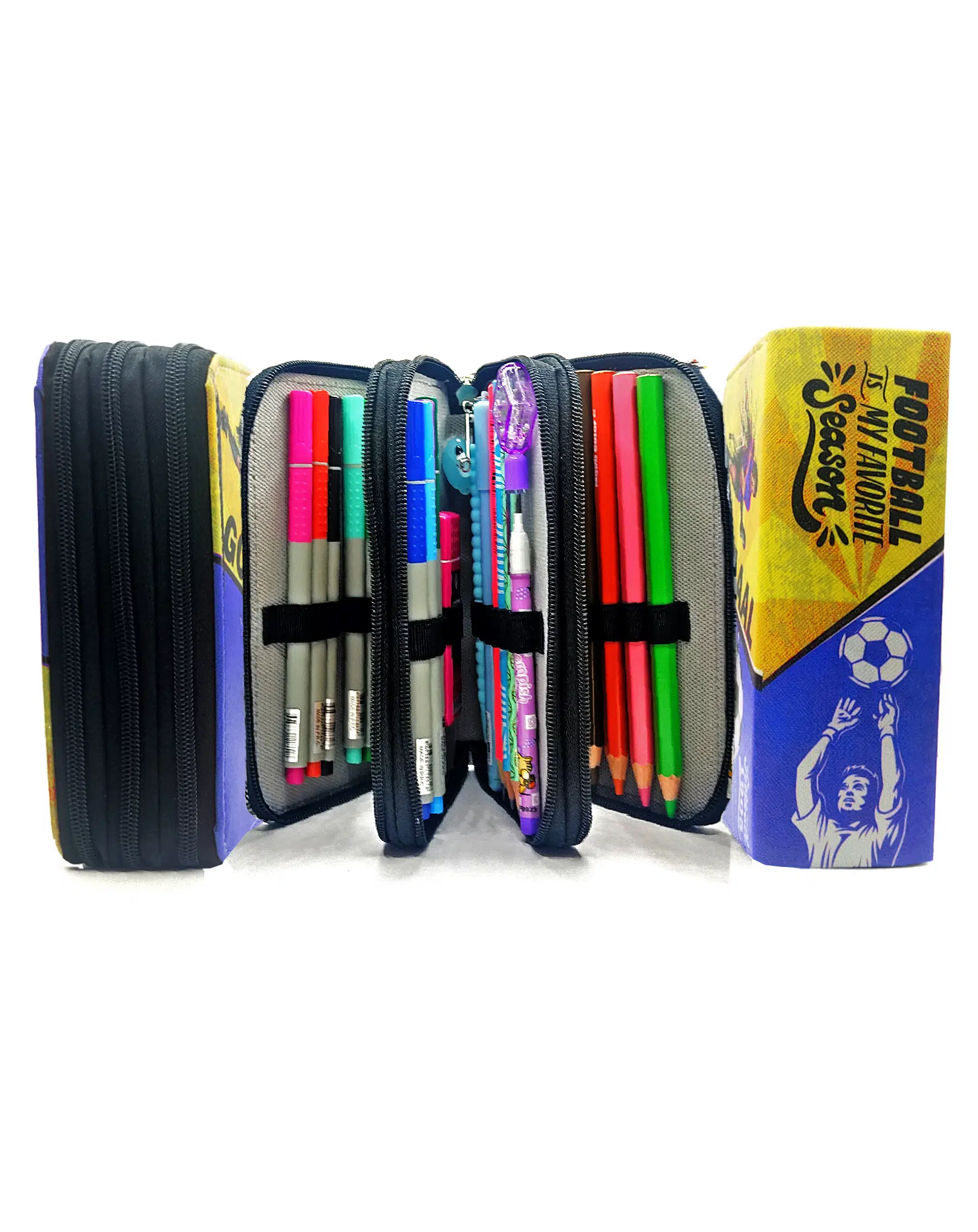 Kalem Kutusu Sarı Lacivert Taraftar Futbol Organizer Kalemkutu Vegan Deri Üç Bölmeli Kalemlik