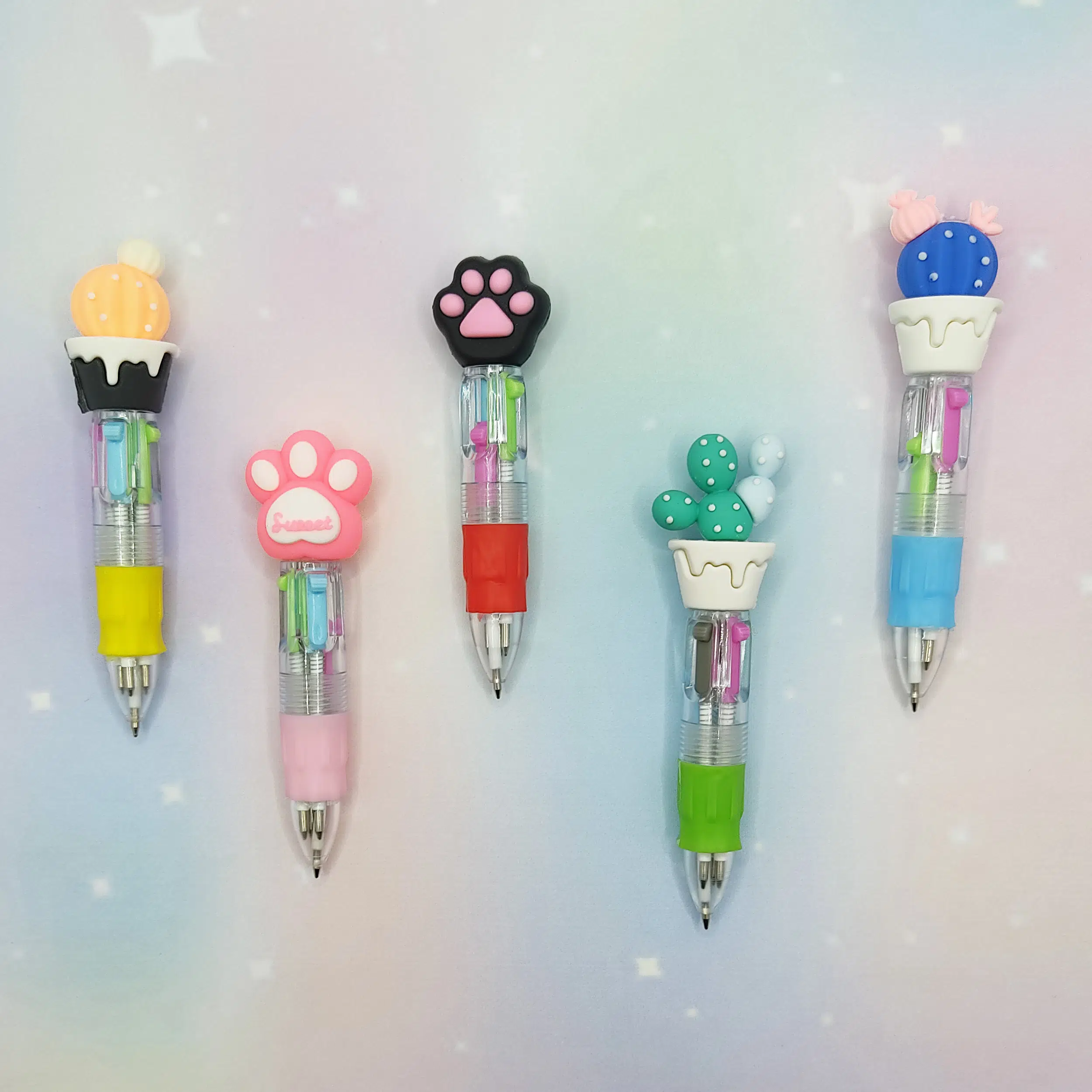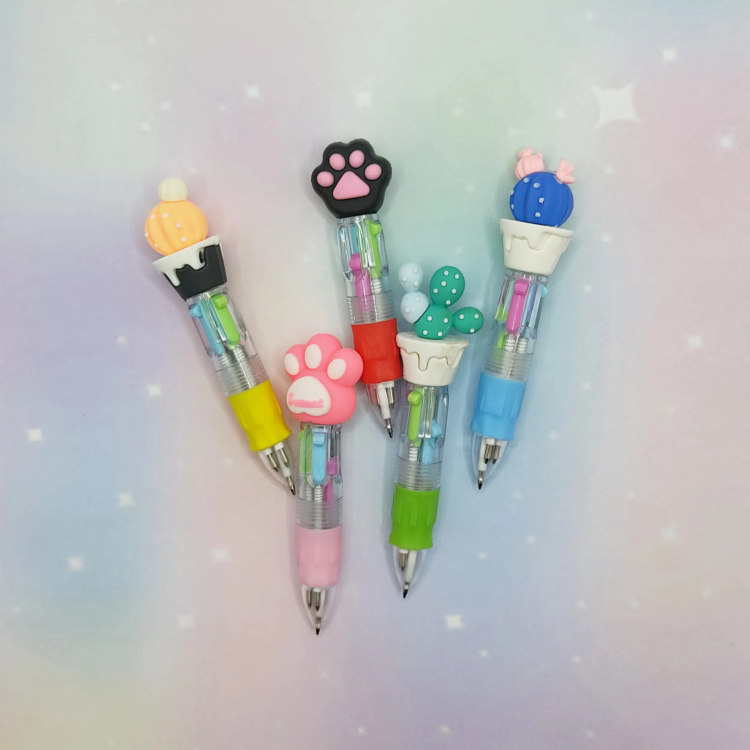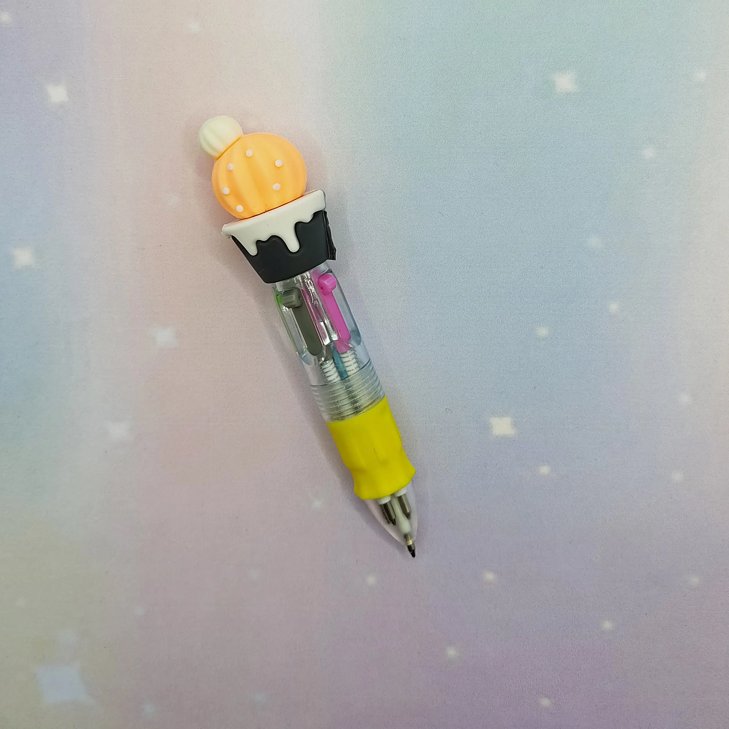 Mini Turuncu Yuvarlak Kaktüslü Çoklu 4 Renkli Tükenmez Kalem - 1 Adet